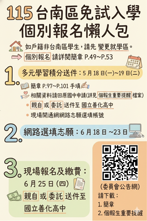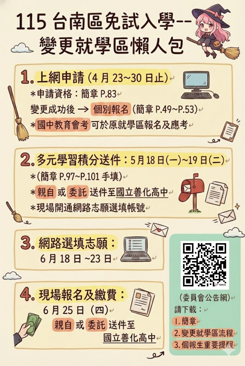 115臺南區免試-- 變更就學區 & 個別報名 懶人包及相關資訊